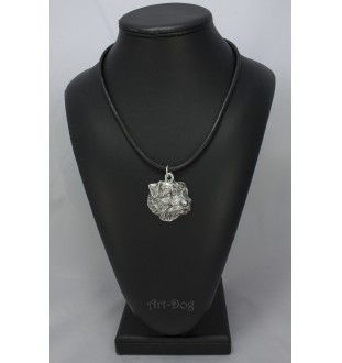 Nasze wysokiej klasy naszyjniki tworzone są ręcznie przez najlepszego polskiego artystę. Cechuje je niezwykła precyzja wykonania oraz dbałość o detale, dzięki którym wiernie odtworzono charakterystyczne cechy rasy. Do produkcji używamy wysokiej jakości stopu cynku i aluminium, co czyni nasze produkty trwałymi i odpornymi na uszkodzenia, można cieszyć się nimi przez lata. Nasze zawieszki zostały pokryte warstwą srebra, dzięki czemu produkt nie uczula. Medalion zawieszony jest na naturalnym rzemieniu ze srebrnym zapięciem.